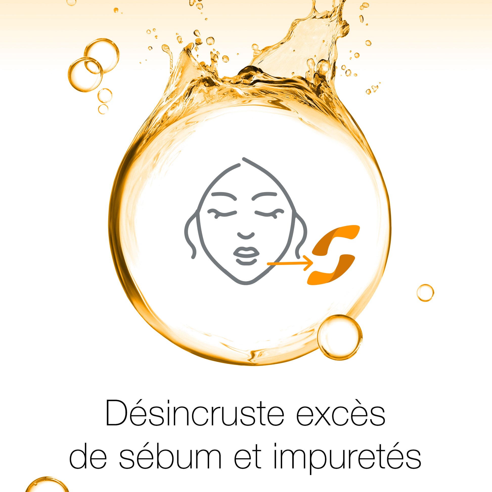 Application : Masser sur le visage humidifié une fois par jour et rincer abondamment.