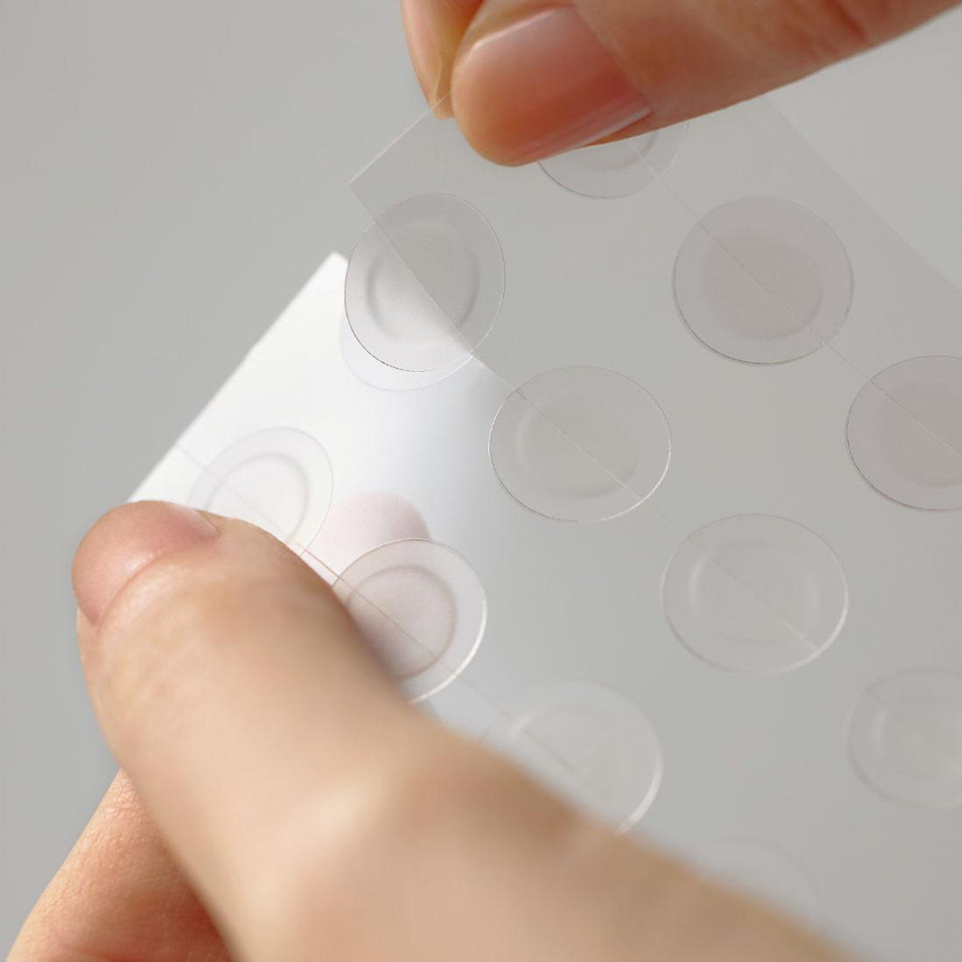 Décolle un patch de la feuille et applique-le directement sur le bouton ou l'imperfection ciblé.