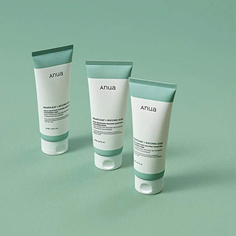 La mousse nettoyante ANUA Heartleaf Succinic Moisture Foam est un nettoyant moussant doux mais efficace conçu pour les peaux sensibles, qui permet un nettoyage en profondeur tout en maintenant l'hydratation.