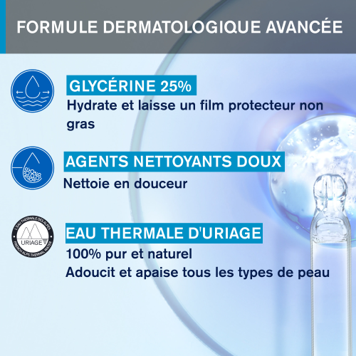 Grace à ses agents doux surgraissants et l’Eau Thermale d’Uriage, elle protège la peau des effets desséchants de l’eau calcaire.