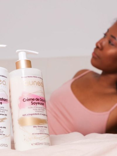 Le lait corporel Aunea formulée sans parabens, a été pensé spécialement pour les adultes à peaux noires, mates et métissées.
