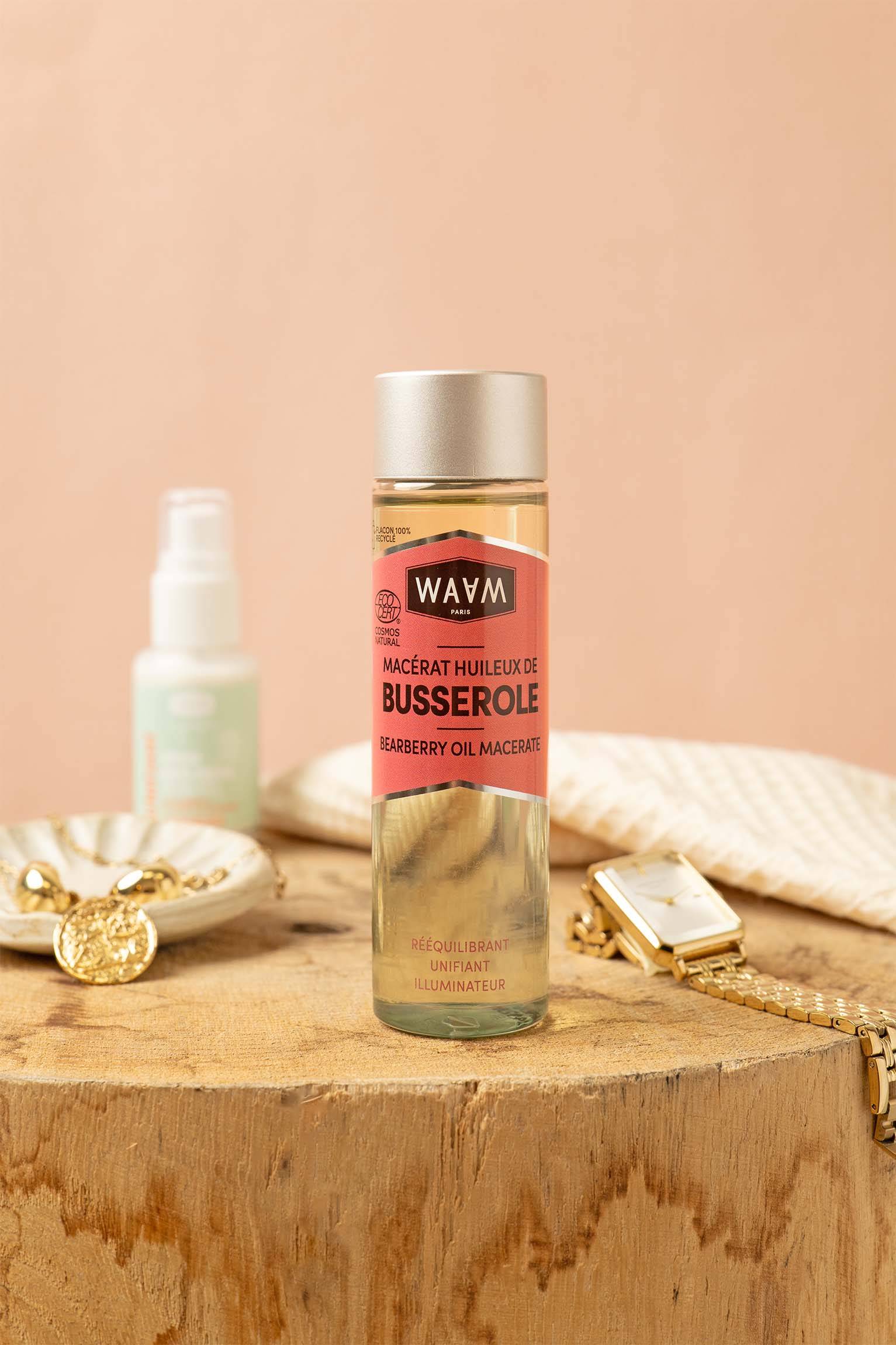 Le macérât huileux de Busserole atténue les taches et unifie le teint. Astringent, il resserre également les pores. C'est un véritable allié pour la beauté de la peau. Il est reconnu pour ses propriétés unifiantes et éclaircissantes. Grâce à sa richesse en arbutine, une molécule naturelle qui aide à réguler la production de mélanine, elle est particulièrement efficace pour éclaircir la pigmentation de la peau et ainsi aider à réduire l’apparence des taches pigmentaires. La peau retrouve alors un teint homogène et lumineux.