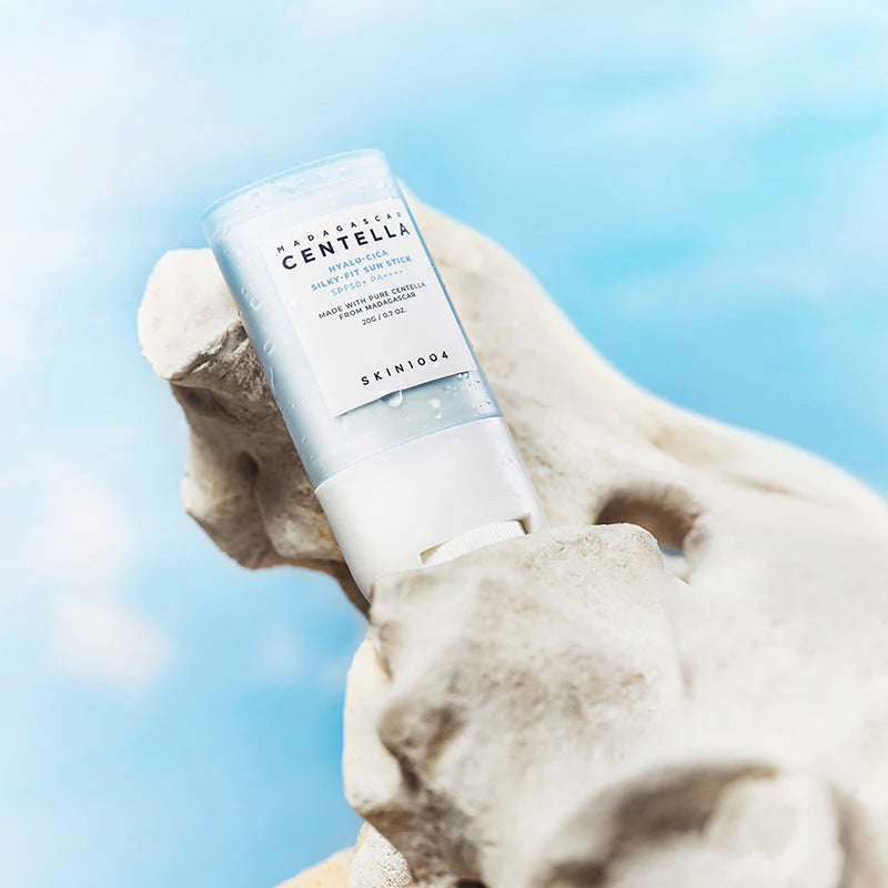 Le Madagascar Centella Hyalu-Cica Silky-fit Sun Stick SKIN1004 offre une protection robuste SPF 50+ PA++++ ainsi qu'une hydratation intense, grâce à son mélange unique d'extrait de cica et d'acide hyaluronique. Ce stick solaire à protection chimique protège non seulement ta peau des rayons UV nocifs, mais l'hydrate aussi en profondeur pour maintenir un niveau d'hydratation optimal.