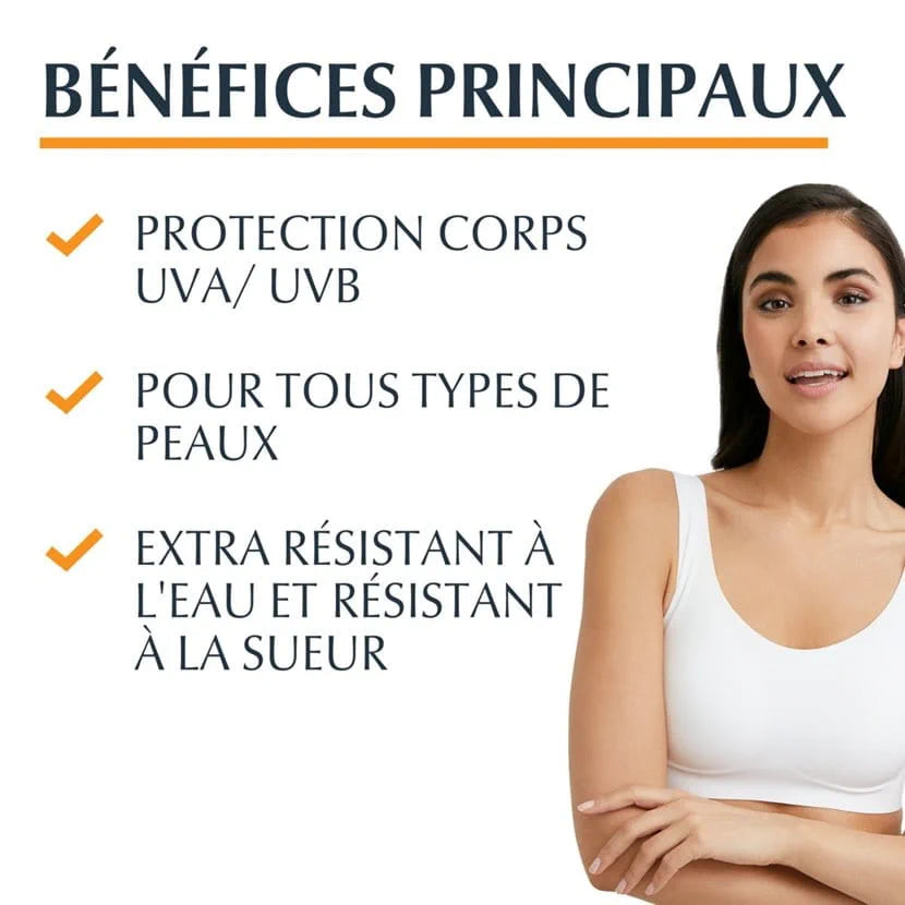 Gel-crème solaire haute protection UVA et UVB SPF 50+Vous pouvez dire au revoir à la peau collante avec Eucerin SUN SENSITIVE PROTECT GEL-CREME TOUCHER SEC SPF 50+ ! Cette protection solaire a une texture ultra-légère, non grasse et non collante qui laisse un fini toucher sec sur la peau. La formule contient la Technologie Oil Control de Régulation du Sébum, qui combine des huiles soigneusement sélectionnées et des pigments matifiants qui laissent un fini toucher sec immédiat sur la peau. Facile à appliquer, cet écran solaire ne laisse aucun résidu désagréable sur la peau. Il est résistant à l'eau, à la sueur et est anti-sable. Le nouveau gel-crème pour le corps SUN SENSITIVE PROTECT GEL CRÈME TOUCHER SEC SPF 50+, offre une protection efficace contre les dommages cutanés causés par le soleil grâce à l'Advanced Spectral Technology : une combinaison de filtres UVA et UVB pour une très haute protection contre les UV, associés à la Licochalcone A, un antioxydant qui agit sur les radicaux libres générés par les UV et la lumière visible de haute énergie.
