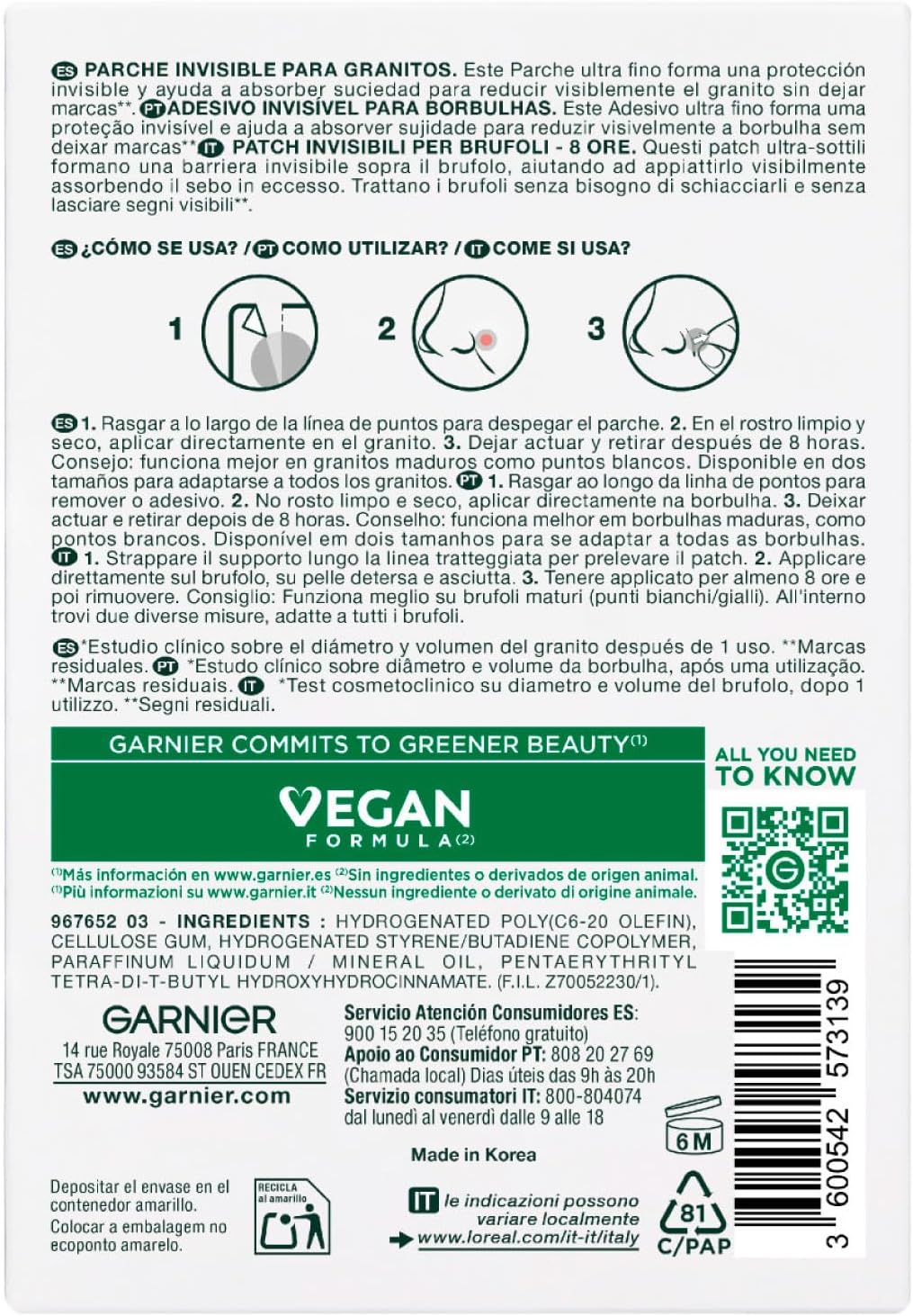 Ce patch ultra fin hydrocolloïde forme une barrière protectrice invisible autour du bouton, pour le réduire visiblement en 8 heures, sans le percer ni laisser de marques. Le Pimple Patch de Garnier convient à tous les types de peaux, il est également invisible sur toutes les carnations et compatible avec la routine maquillage.