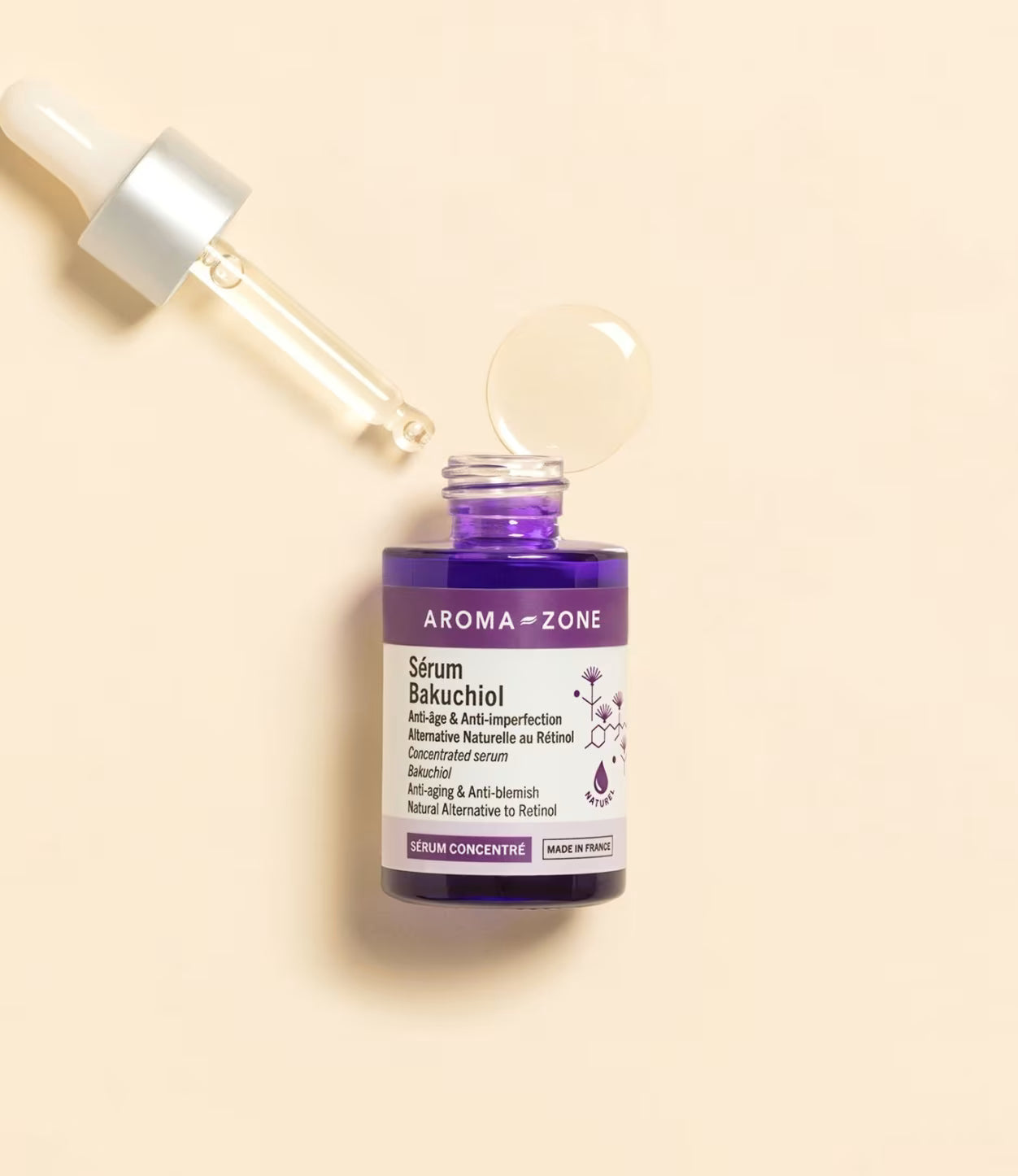 Appliquez quelques gouttes de Sérum visage concentré Bakuchiol sur le visage, le contour des yeux et le cou, en massant doucement du bout des doigts pour faire pénétrer le produit.